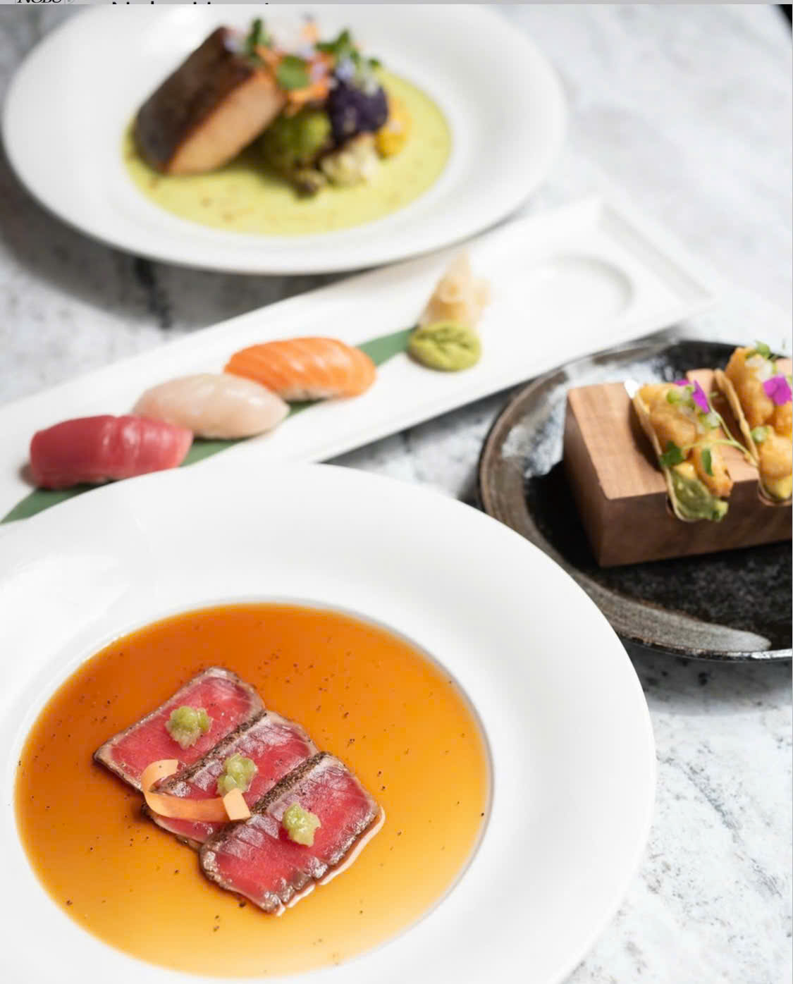 Signature dishes at Nobu Los Angeles include the famous Black Cod with Miso, Yellowtail Jalapeño, Peruvian-style ceviche, and premium sushi and sashimi. Each plate highlights Nobu’s pioneering fusion style, combining Japanese precision with bold Peruvian flavors.